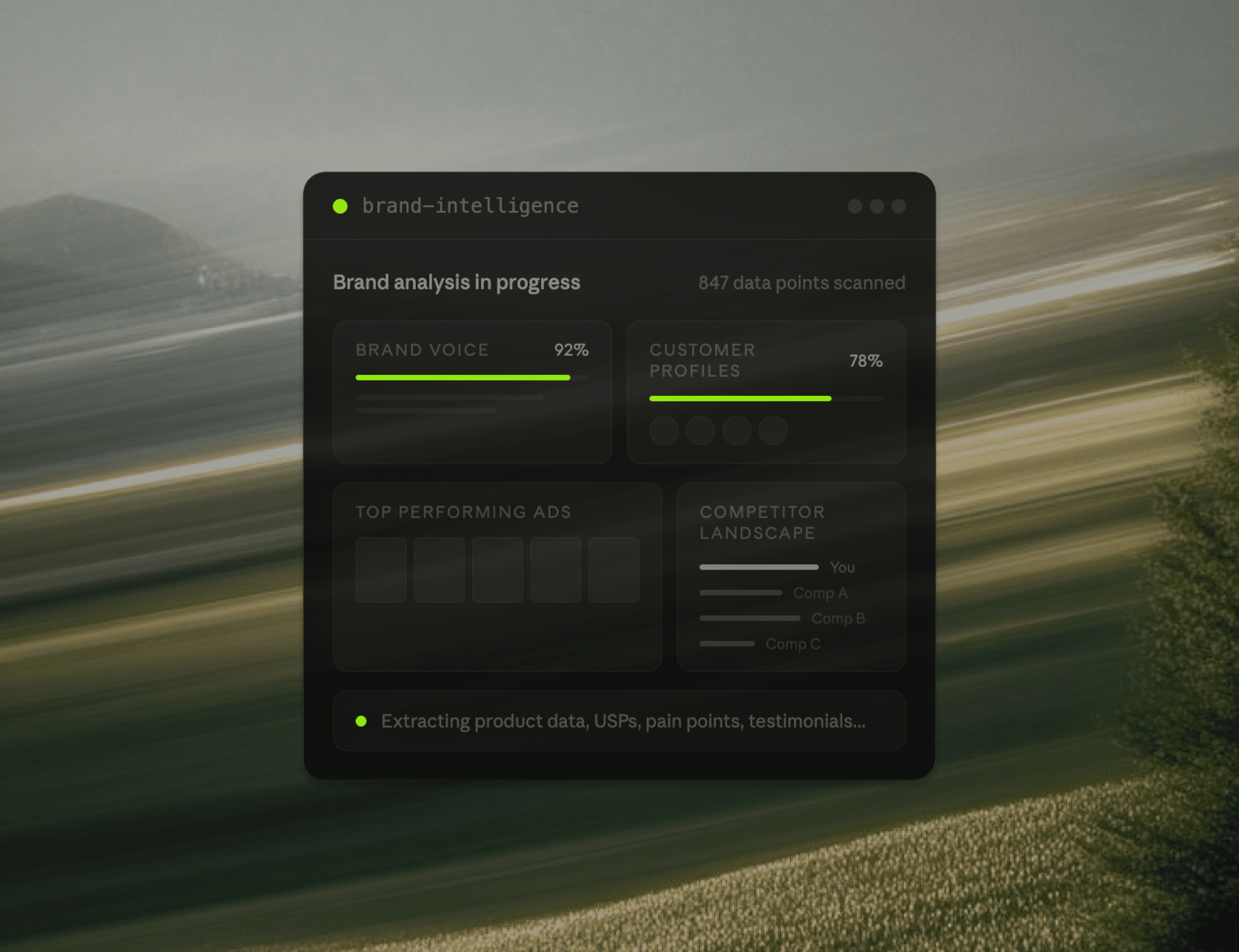 We produce your first 100 on-brand ads done for you while the system is being built.